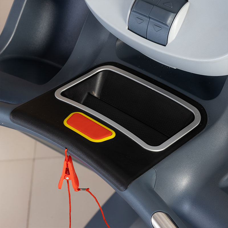 Praktisk betjening og opbevaringsdesign: Kontrolpanelet integrerer grundlæggende programmeringsfunktioner for at imødekomme grundlæggende træningsbehov med en intuitiv grænseflade til nem styring. Den inkluderer to flaskeholdere til sikker opbevaring og en opbevaringshylde til sikkert at opbevare ting som telefoner, med rigelig resterende plads til nøgler, medlemskort osv.